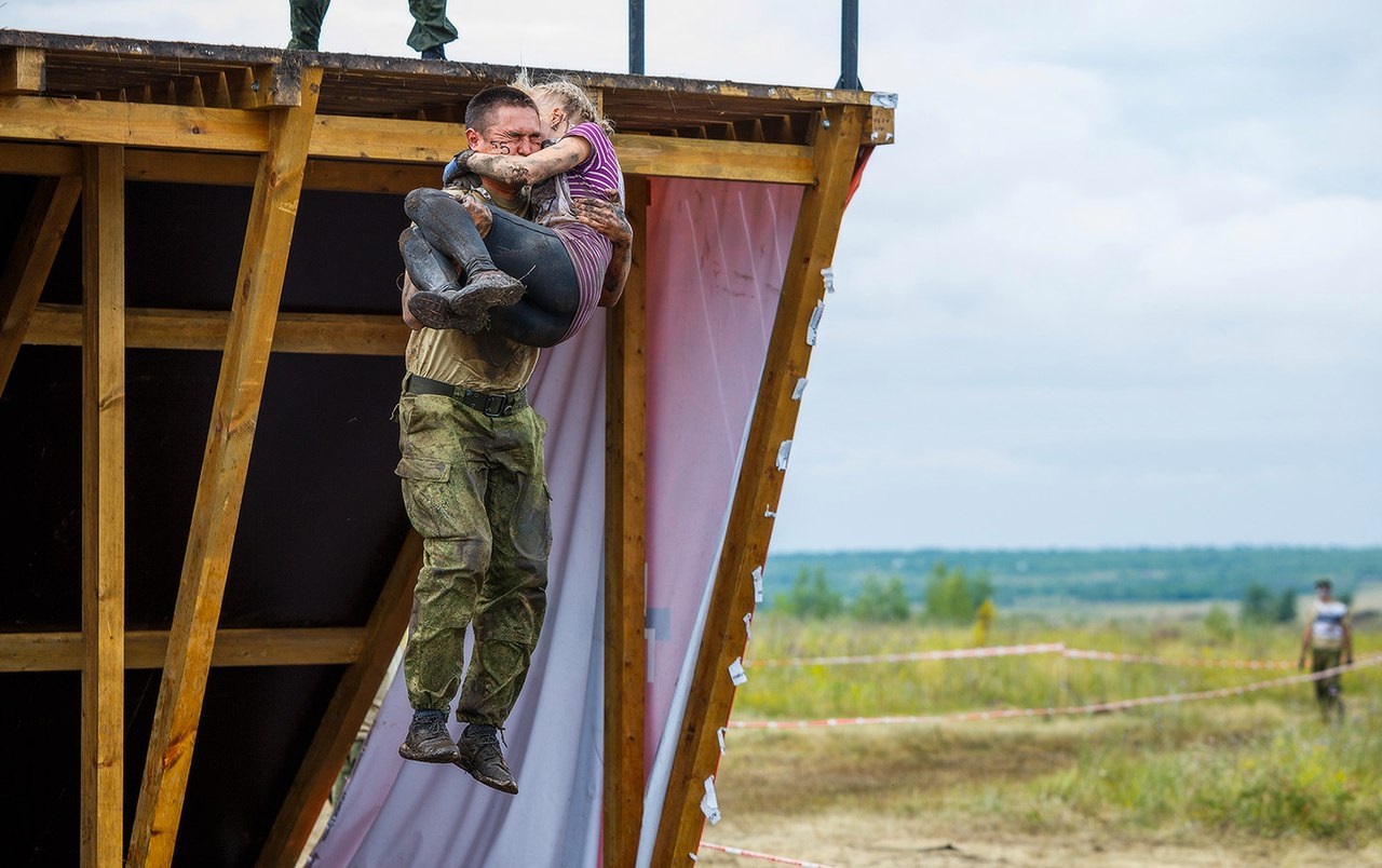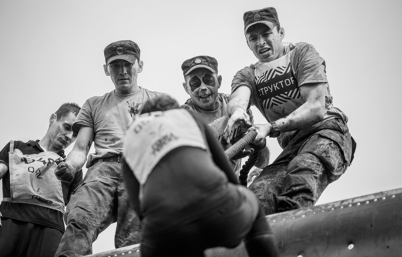 Гонка проходила под девизом: «Сухим и чистым не останется никто». И это была абсолютная правда, потому что на первых же препятствиях пришлось принудительно искупаться и в воде, и в грязи. Окопы, колючая проволока, стреляющие БТР, рвы с водой, стенки с отрицательным уклоном, дымовые завесы - это далеко не всё, что преодолевали мы. Последнее испытание представляло собой высоченную стену, на которую нужно было забраться по канату, до которого, в свою очередь, ещё тоже нужно было дотянуться. Сил практически не осталось, но никто не собирался сдаваться. Последние метры до финиша наша команда бежала, взявшись за руки, где нас уже поджидала награда - заветные жетоны «Гонки», горячий душ и ароматная гречка из армейской полевой кухни.