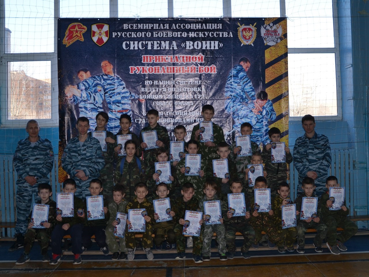 В минувшее воскресенье (28.01.2018 г.) воспитанники Всемирной Ассоциации Русского Боевого Искусства проходили аттестацию по прикладному рукопашному бою системы "ВОИН". В Аттестации приняли участия 190 воспитанников Ассоциации. ПОЗДРАВЛЯЕМ всех учеников с успешно пройденной Аттестацией!!! И желаем не останавливаться на достигнутых результатах, а стремится к большим успехам!!! Ученикам успешно сдавшим Аттестацию были вручены Свидетельства о присвоении ступени, определяющей уровень знаний и умений, а также знак отличия - шеврон.